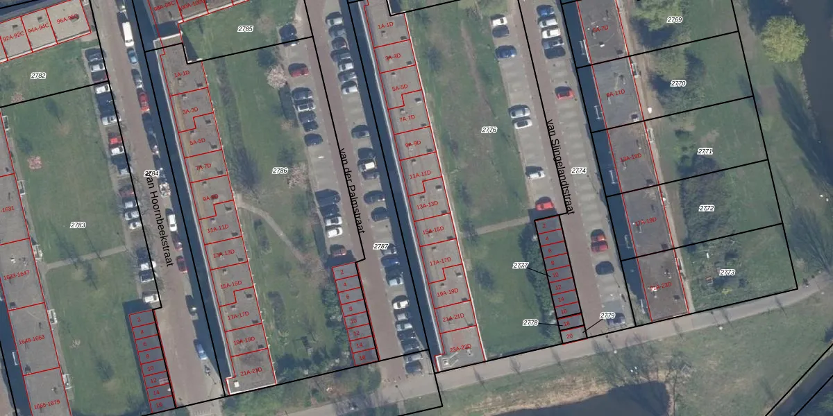 van der Palmstraat 13-A is gelegen op kadastraal perceel VDG00G2776. Deze kadastrale aanduiding is uniek en wordt gebruikt door het Kadaster om eigendomsrechten en andere zakelijke rechten vast te leggen. Het perceel maakt onderdeel uit van de kadastrale gemeente Vlaardingen.