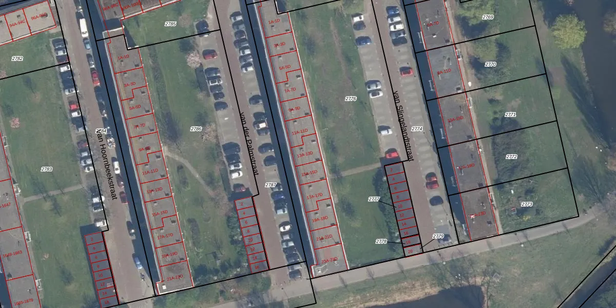 van der Palmstraat 13-D is gelegen op kadastraal perceel VDG00G2776. Deze kadastrale aanduiding is uniek en wordt gebruikt door het Kadaster om eigendomsrechten en andere zakelijke rechten vast te leggen. Het perceel maakt onderdeel uit van de kadastrale gemeente Vlaardingen.