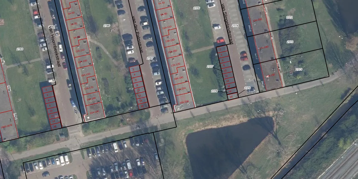 Het perceel waarop van der Palmstraat 21-B staat heeft een oppervlakte van 3246 m². Dit is een zeer groot perceel. De perceeloppervlakte wordt geregistreerd door het Kadaster. Gedetailleerde informatie over de maten van dit perceel kunt u vinden in het rapport Kadastrale kaart met maatvoering van van der Palmstraat 21-B.