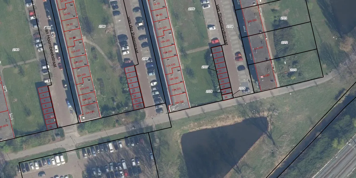 Het perceel waarop van der Palmstraat 21-D staat heeft een oppervlakte van 3246 m². Dit is een zeer groot perceel. De perceeloppervlakte wordt geregistreerd door het Kadaster. Gedetailleerde informatie over de maten van dit perceel kunt u vinden in het rapport Kadastrale kaart met maatvoering van van der Palmstraat 21-D.
