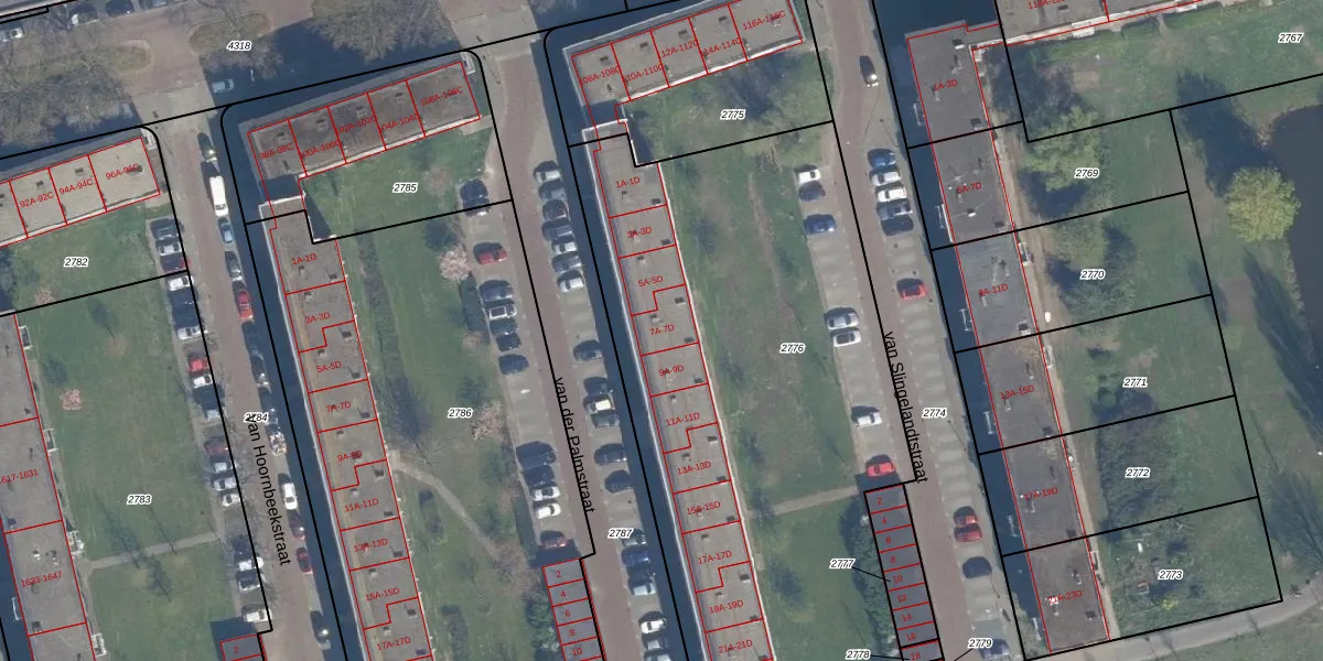 van der Palmstraat 7-C is gelegen op kadastraal perceel VDG00G2776. Deze kadastrale aanduiding is uniek en wordt gebruikt door het Kadaster om eigendomsrechten en andere zakelijke rechten vast te leggen. Het perceel maakt onderdeel uit van de kadastrale gemeente Vlaardingen.