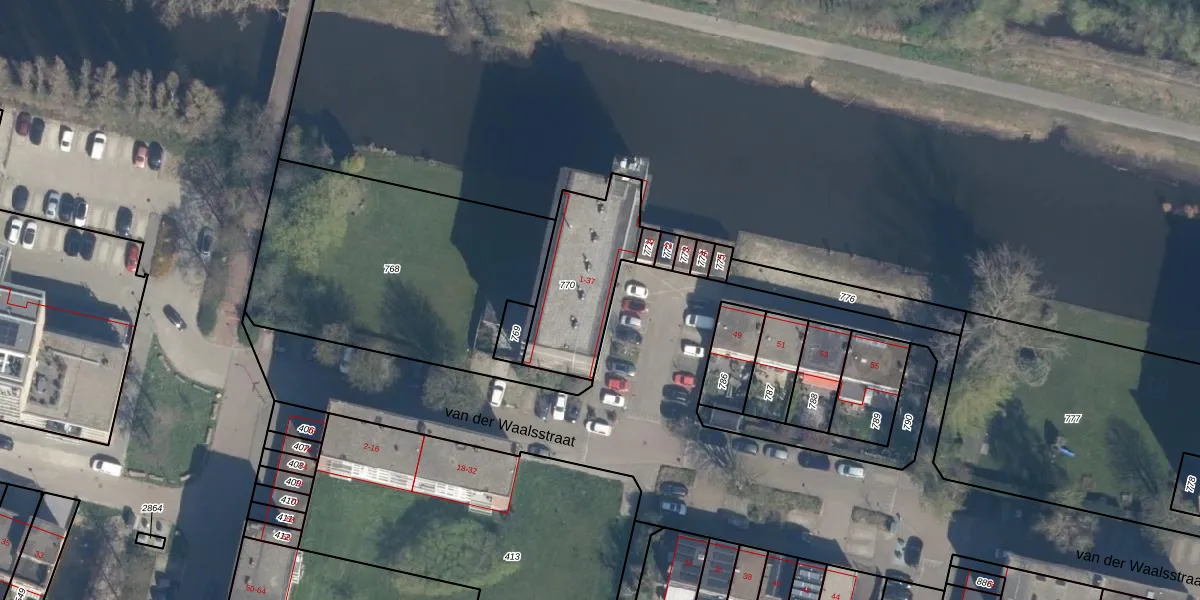 Het perceel waarop van der Waalsstraat 21 staat heeft een oppervlakte van 403 m². Dit is een groot perceel. De perceeloppervlakte wordt geregistreerd door het Kadaster. Gedetailleerde informatie over de maten van dit perceel kunt u vinden in het rapport Kadastrale kaart met maatvoering van van der Waalsstraat 21.