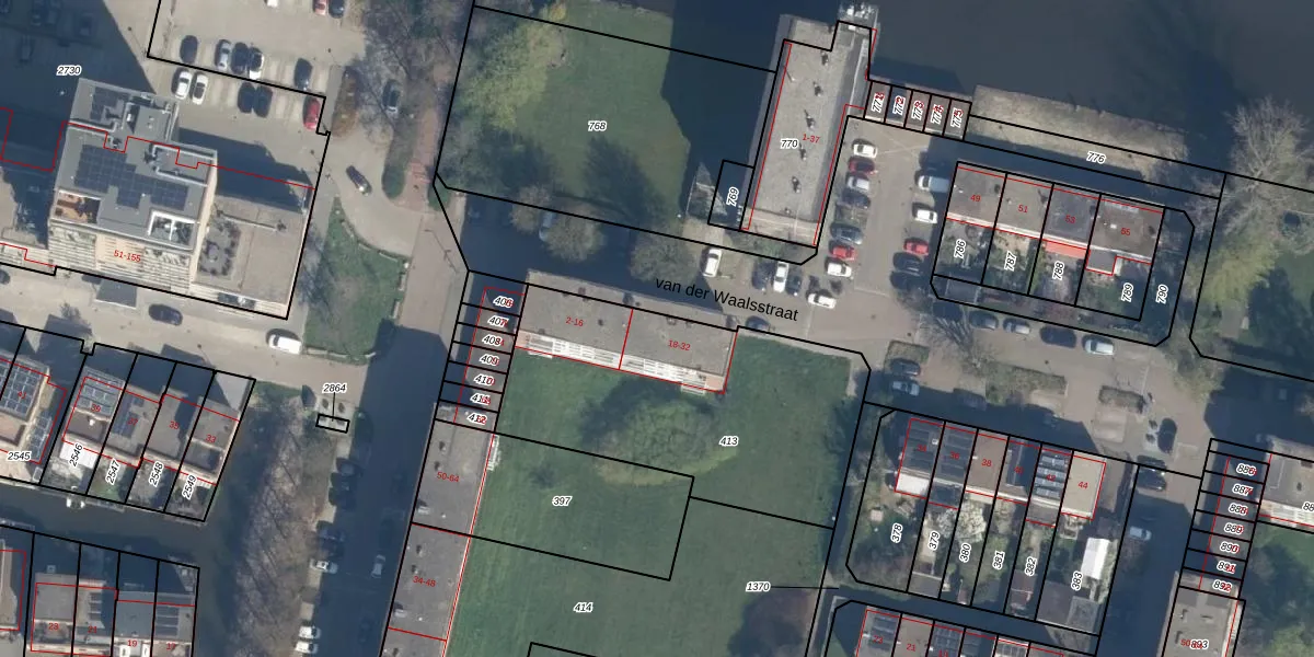 Het perceel waarop van der Waalsstraat 30 staat heeft een oppervlakte van 1322 m². Dit is een zeer groot perceel. De perceeloppervlakte wordt geregistreerd door het Kadaster. Gedetailleerde informatie over de maten van dit perceel kunt u vinden in het rapport Kadastrale kaart met maatvoering van van der Waalsstraat 30.