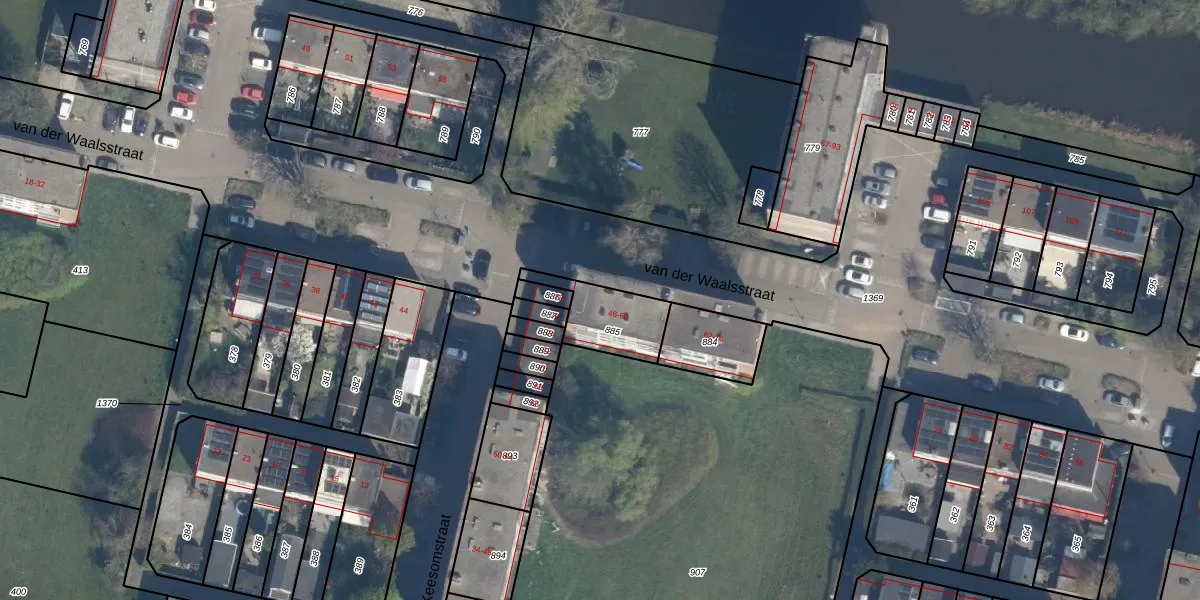 Het perceel waarop van der Waalsstraat 60 staat heeft een oppervlakte van 187 m². Dit is een middelgroot perceel. De perceeloppervlakte wordt geregistreerd door het Kadaster. Gedetailleerde informatie over de maten van dit perceel kunt u vinden in het rapport Kadastrale kaart met maatvoering van van der Waalsstraat 60.