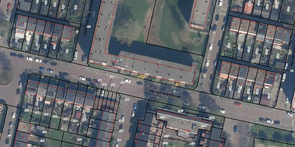 Het perceel waarop van der Werffstraat 284 staat heeft een oppervlakte van 4792 m². Dit is een zeer groot perceel. De perceeloppervlakte wordt geregistreerd door het Kadaster. Gedetailleerde informatie over de maten van dit perceel kunt u vinden in het rapport Kadastrale kaart met maatvoering van van der Werffstraat 284.