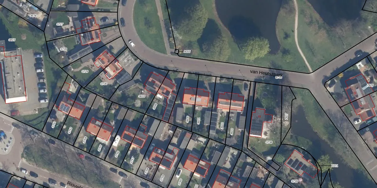 Het perceel waarop van Heutszpark 49 staat heeft een oppervlakte van 307 m². Dit is een groot perceel. De perceeloppervlakte wordt geregistreerd door het Kadaster. Gedetailleerde informatie over de maten van dit perceel kunt u vinden in het rapport Kadastrale kaart met maatvoering van van Heutszpark 49.