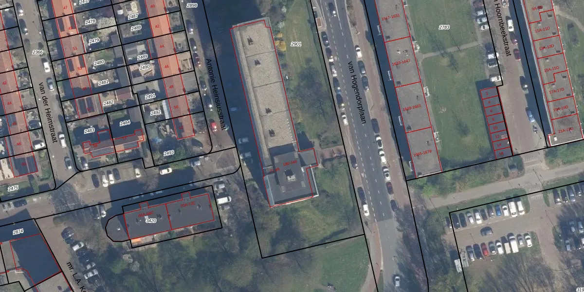 van Hogendorplaan 310 is gelegen op kadastraal perceel VDG00G2901. Deze kadastrale aanduiding is uniek en wordt gebruikt door het Kadaster om eigendomsrechten en andere zakelijke rechten vast te leggen. Het perceel maakt onderdeel uit van de kadastrale gemeente Vlaardingen.