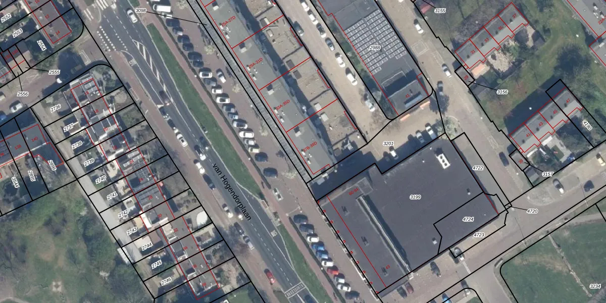 van Hogendorplaan 39-A is gelegen op kadastraal perceel VDG00G2566. Deze kadastrale aanduiding is uniek en wordt gebruikt door het Kadaster om eigendomsrechten en andere zakelijke rechten vast te leggen. Het perceel maakt onderdeel uit van de kadastrale gemeente Vlaardingen.