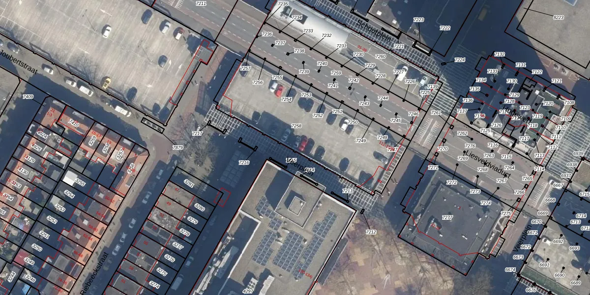 Het adres ligt op het perceel VDG00-D-7258, dat zich in de kadastrale gemeente Vlaardingen bevindt. De oppervlakte van het perceel is 1423 m². Dat is groter dan gemiddeld in Vlaardingen, waar de gemiddelde perceeloppervlakte op 1372,24 m² ligt. Het grootste perceel in de kadastrale gemeente is 1,02 km². Het kleinste perceel heeft een oppervlakte van 0 m². Op het perceel liggen in totaal 7 adressen. De laatste wijziging in het de Basisregistratie Kadaster (BRK) was op 28-04-2010.