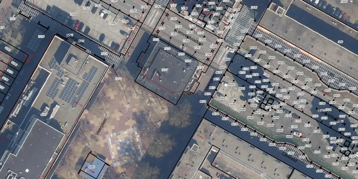 Het perceel waarop Veerplein 30 staat heeft een oppervlakte van 900 m². Dit is een groot perceel. De perceeloppervlakte wordt geregistreerd door het Kadaster. Gedetailleerde informatie over de maten van dit perceel kunt u vinden in het rapport Kadastrale kaart met maatvoering van Veerplein 30.