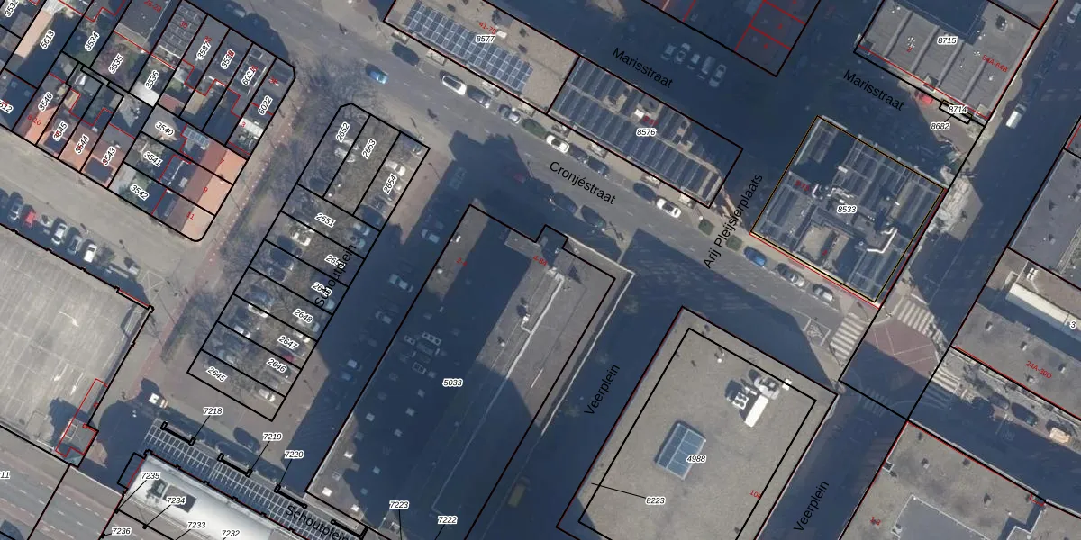Het adres ligt op het perceel VDG00-D-5033, dat zich in de kadastrale gemeente Vlaardingen bevindt. De oppervlakte van het perceel is 1872 m². Dat is groter dan gemiddeld in Vlaardingen, waar de gemiddelde perceeloppervlakte op 1372,24 m² ligt. Het kleinste perceel in de kadastrale gemeente is 0 m² groot. De grootste perceeloppervlakte is 1,02 km². Op het perceel liggen in totaal 28 adressen. In de Basisregistratie Kadaster (BRK) werden de grenzen van het perceel geregistreerd op 28-04-2010.