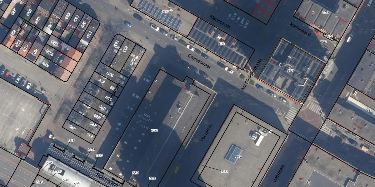 Het perceel waarop Veerplein 80 staat heeft een oppervlakte van 1872 m². Dit is een zeer groot perceel. De perceeloppervlakte wordt geregistreerd door het Kadaster. Gedetailleerde informatie over de maten van dit perceel kunt u vinden in het rapport Kadastrale kaart met maatvoering van Veerplein 80.