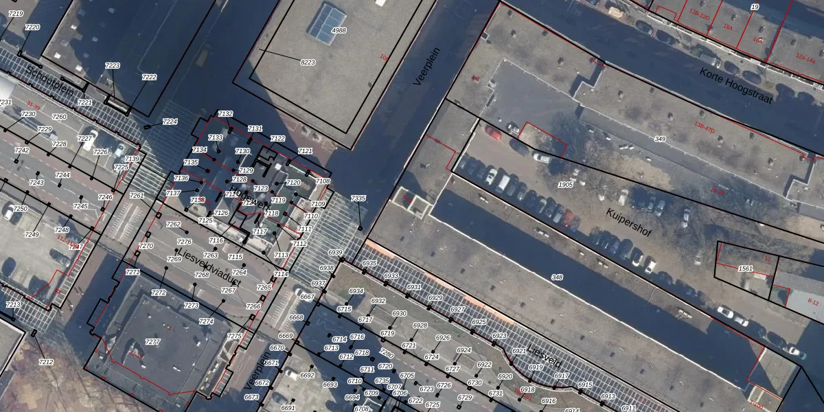 Het perceel waarop Veerplein 9 staat heeft een oppervlakte van 2742 m². Dit is een zeer groot perceel. De perceeloppervlakte wordt geregistreerd door het Kadaster. Gedetailleerde informatie over de maten van dit perceel kunt u vinden in het rapport Kadastrale kaart met maatvoering van Veerplein 9.