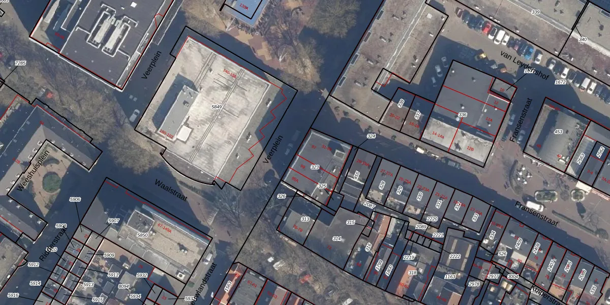 Het perceel waarop Veerplein 97 staat heeft een oppervlakte van 331 m². Dit is een groot perceel. De perceeloppervlakte wordt geregistreerd door het Kadaster. Gedetailleerde informatie over de maten van dit perceel kunt u vinden in het rapport Kadastrale kaart met maatvoering van Veerplein 97.
