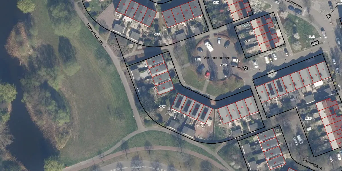 Vlielandhoeve 33 is gelegen op kadastraal perceel VDG00K2437. Deze kadastrale aanduiding is uniek en wordt gebruikt door het Kadaster om eigendomsrechten en andere zakelijke rechten vast te leggen. Het perceel maakt onderdeel uit van de kadastrale gemeente Vlaardingen.