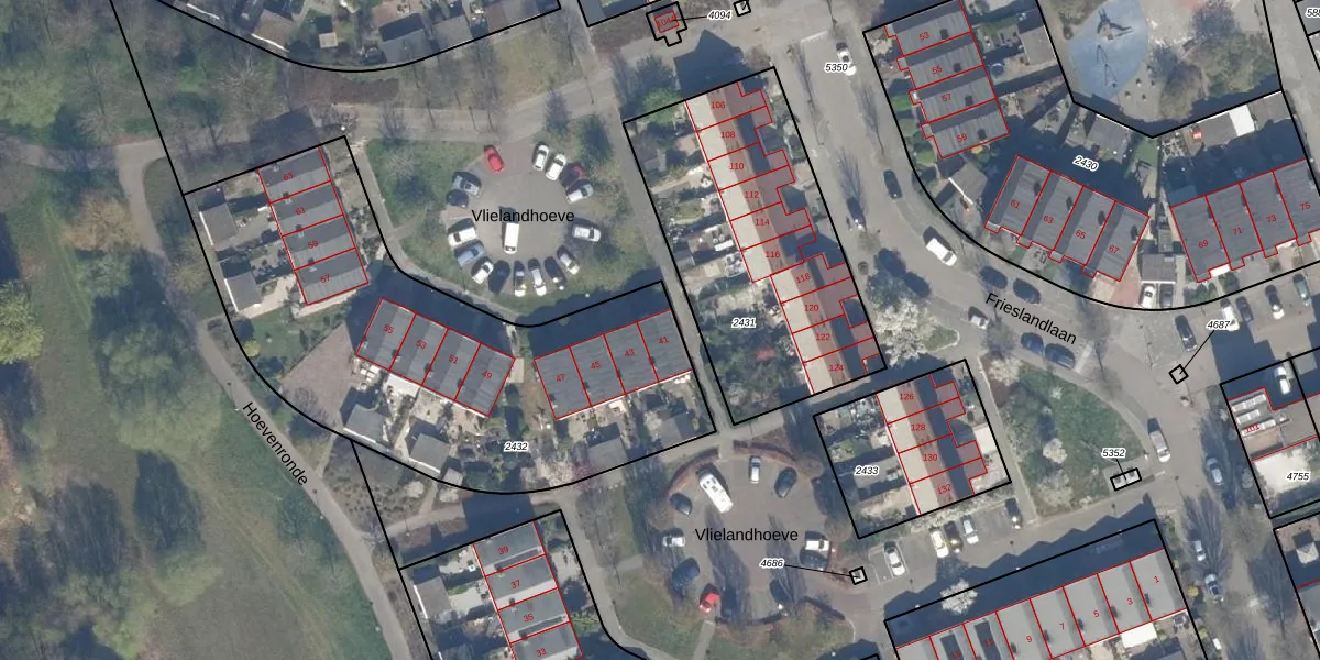 Vlielandhoeve 41 is gelegen op kadastraal perceel VDG00K2432. Deze kadastrale aanduiding is uniek en wordt gebruikt door het Kadaster om eigendomsrechten en andere zakelijke rechten vast te leggen. Het perceel maakt onderdeel uit van de kadastrale gemeente Vlaardingen.