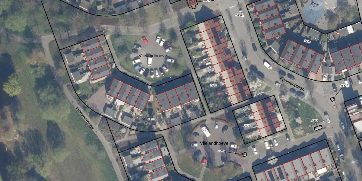 Vlielandhoeve 43 is gelegen op kadastraal perceel VDG00K2432. Deze kadastrale aanduiding is uniek en wordt gebruikt door het Kadaster om eigendomsrechten en andere zakelijke rechten vast te leggen. Het perceel maakt onderdeel uit van de kadastrale gemeente Vlaardingen.