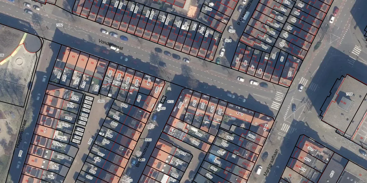 Het perceel waarop Vondelstraat 31 staat heeft een oppervlakte van 114 m². Dit is een middelgroot perceel. De perceeloppervlakte wordt geregistreerd door het Kadaster. Gedetailleerde informatie over de maten van dit perceel kunt u vinden in het rapport Kadastrale kaart met maatvoering van Vondelstraat 31.