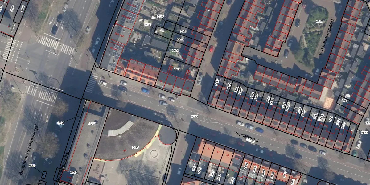 Vondelstraat 52 is gelegen op kadastraal perceel VDG00D7018. Deze kadastrale aanduiding is uniek en wordt gebruikt door het Kadaster om eigendomsrechten en andere zakelijke rechten vast te leggen. Het perceel maakt onderdeel uit van de kadastrale gemeente Vlaardingen.