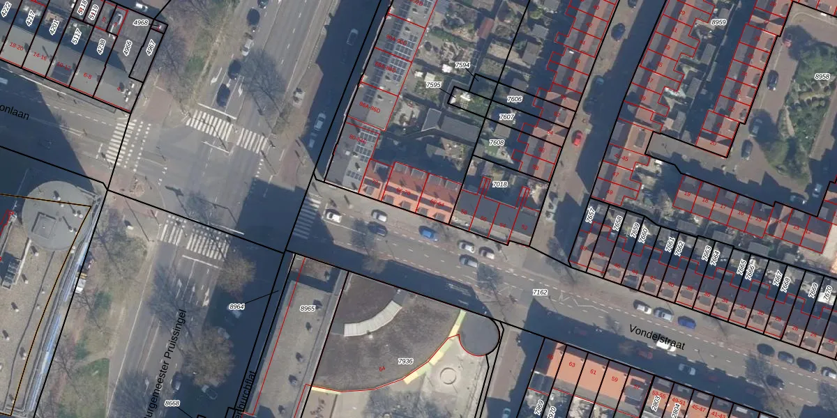Vondelstraat 64 is gelegen op kadastraal perceel VDG00D8963. Deze kadastrale aanduiding is uniek en wordt gebruikt door het Kadaster om eigendomsrechten en andere zakelijke rechten vast te leggen. Het perceel maakt onderdeel uit van de kadastrale gemeente Vlaardingen.