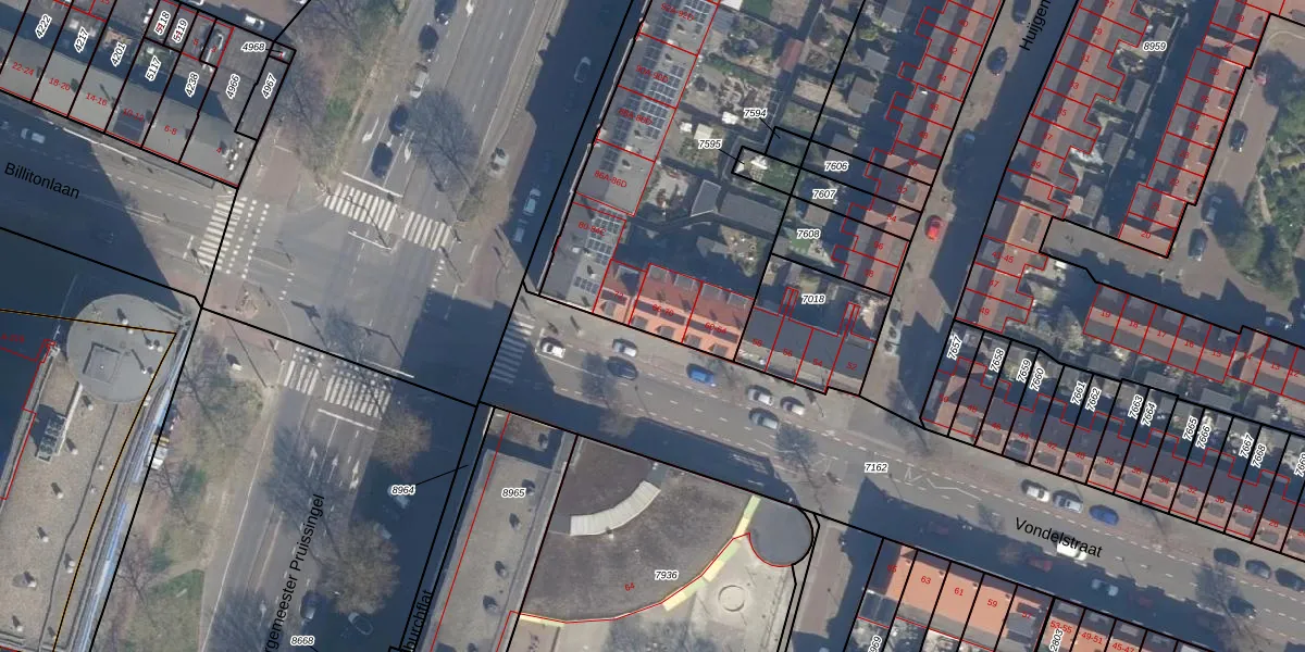 Het perceel waarop Vondelstraat 68 staat heeft een oppervlakte van 4950 m². Dit is een zeer groot perceel. De perceeloppervlakte wordt geregistreerd door het Kadaster. Gedetailleerde informatie over de maten van dit perceel kunt u vinden in het rapport Kadastrale kaart met maatvoering van Vondelstraat 68.