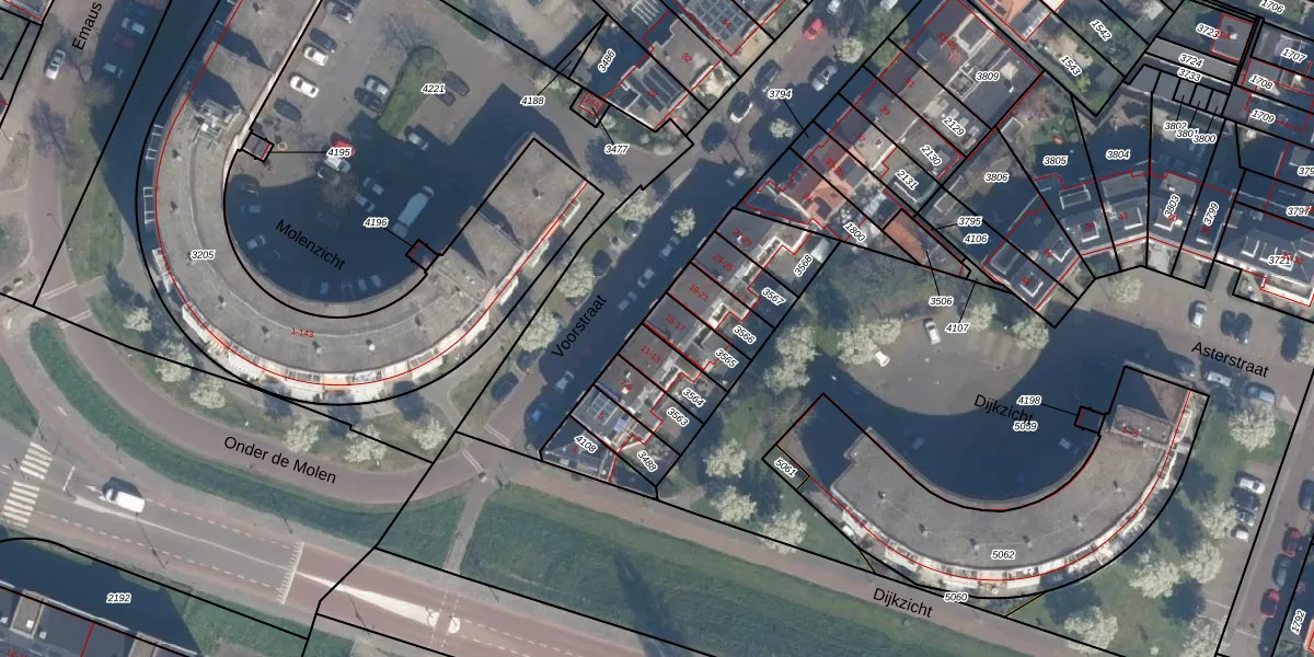 Het perceel waarop Voorstraat 15 staat heeft een oppervlakte van 99 m². Dit is een klein perceel. De perceeloppervlakte wordt geregistreerd door het Kadaster. Gedetailleerde informatie over de maten van dit perceel kunt u vinden in het rapport Kadastrale kaart met maatvoering van Voorstraat 15.