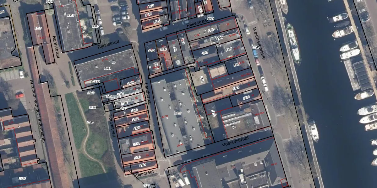 Het perceel waarop Vossenstraat 38 staat heeft een oppervlakte van 1045 m². Dit is een zeer groot perceel. De perceeloppervlakte wordt geregistreerd door het Kadaster. Gedetailleerde informatie over de maten van dit perceel kunt u vinden in het rapport Kadastrale kaart met maatvoering van Vossenstraat 38.