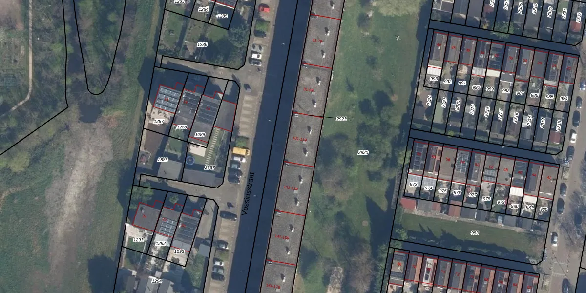Vossiusstraat 107 is gelegen op kadastraal perceel VDG00H2921. Deze kadastrale aanduiding is uniek en wordt gebruikt door het Kadaster om eigendomsrechten en andere zakelijke rechten vast te leggen. Het perceel maakt onderdeel uit van de kadastrale gemeente Vlaardingen.
