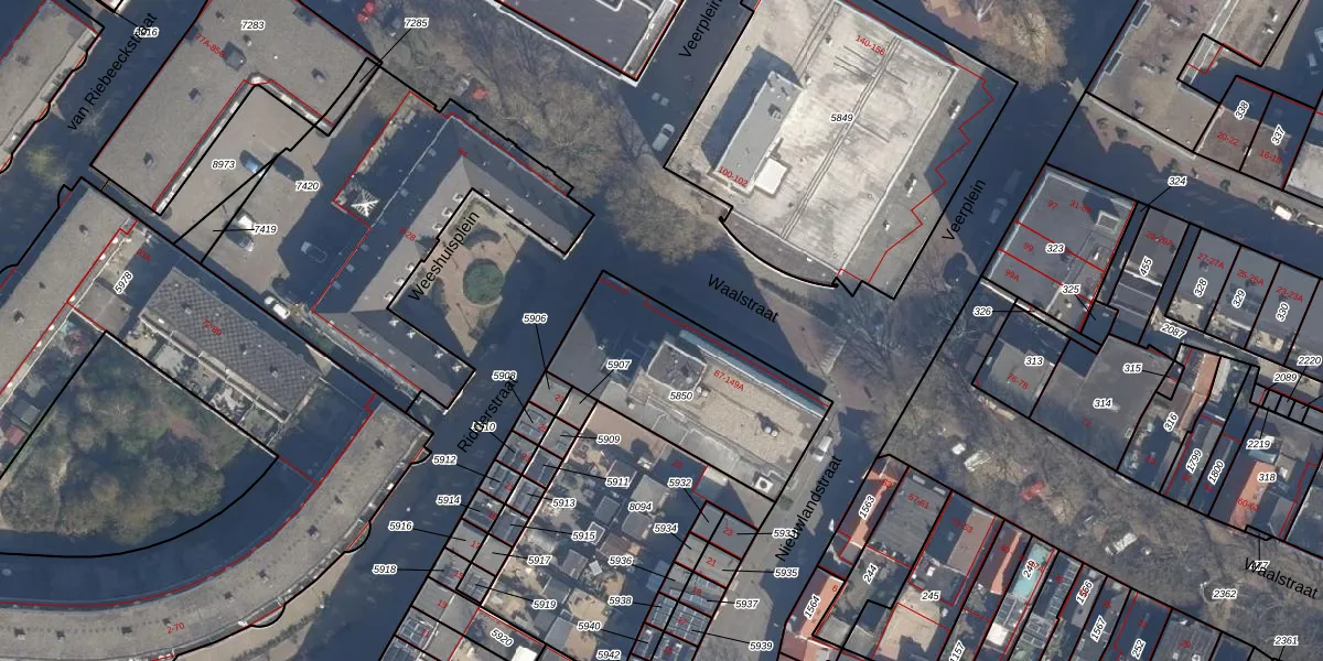 Waalstraat 89 is gelegen op kadastraal perceel VDG00D5850. Deze kadastrale aanduiding is uniek en wordt gebruikt door het Kadaster om eigendomsrechten en andere zakelijke rechten vast te leggen. Het perceel maakt onderdeel uit van de kadastrale gemeente Vlaardingen.