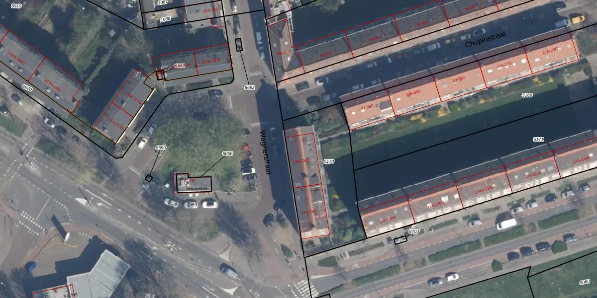 Het perceel waarop Wagnerstraat 23-C staat heeft een oppervlakte van 977 m². Dit is een groot perceel. De perceeloppervlakte wordt geregistreerd door het Kadaster. Gedetailleerde informatie over de maten van dit perceel kunt u vinden in het rapport Kadastrale kaart met maatvoering van Wagnerstraat 23-C.