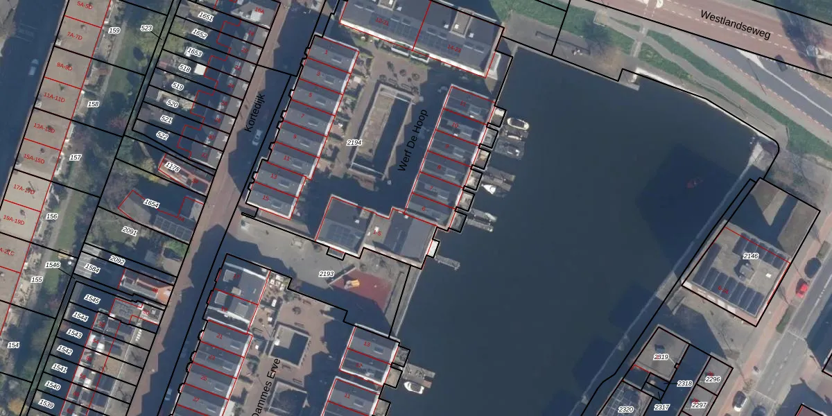 Het perceel waarop het adres ligt is VDG00-M-2194. De afkorting 'VDG00' staat voor kadastrale gemeente Vlaardingen. Het perceel is met 2946 m² relatief groot. Het gemiddelde ligt in de kadastrale gemeente Vlaardingen op 1372,24 m². De grootste perceeloppervlakte in de kadastrale gemeente is 1,02 km². De kleinste oppervlakte bedraagt 0 m². Er zijn 31 adressen aanwezig op het perceel. De laatste wijziging in het de Basisregistratie Kadaster (BRK) was op 04-09-2012.
