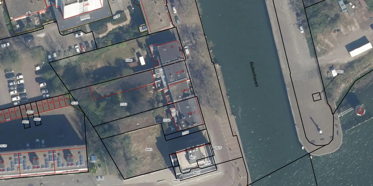 Het perceel waarop Westhavenkade 104 staat heeft een oppervlakte van 1279 m². Dit is een zeer groot perceel. De perceeloppervlakte wordt geregistreerd door het Kadaster. Gedetailleerde informatie over de maten van dit perceel kunt u vinden in het rapport Kadastrale kaart met maatvoering van Westhavenkade 104.