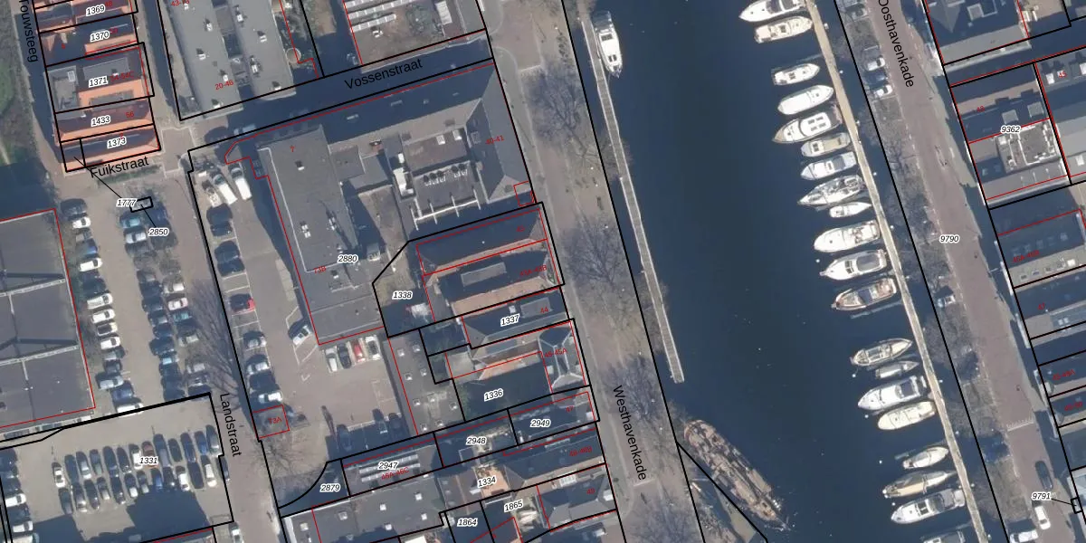 Het perceel waarop Westhavenkade 43-B staat heeft een oppervlakte van 510 m². Dit is een groot perceel. De perceeloppervlakte wordt geregistreerd door het Kadaster. Gedetailleerde informatie over de maten van dit perceel kunt u vinden in het rapport Kadastrale kaart met maatvoering van Westhavenkade 43-B.