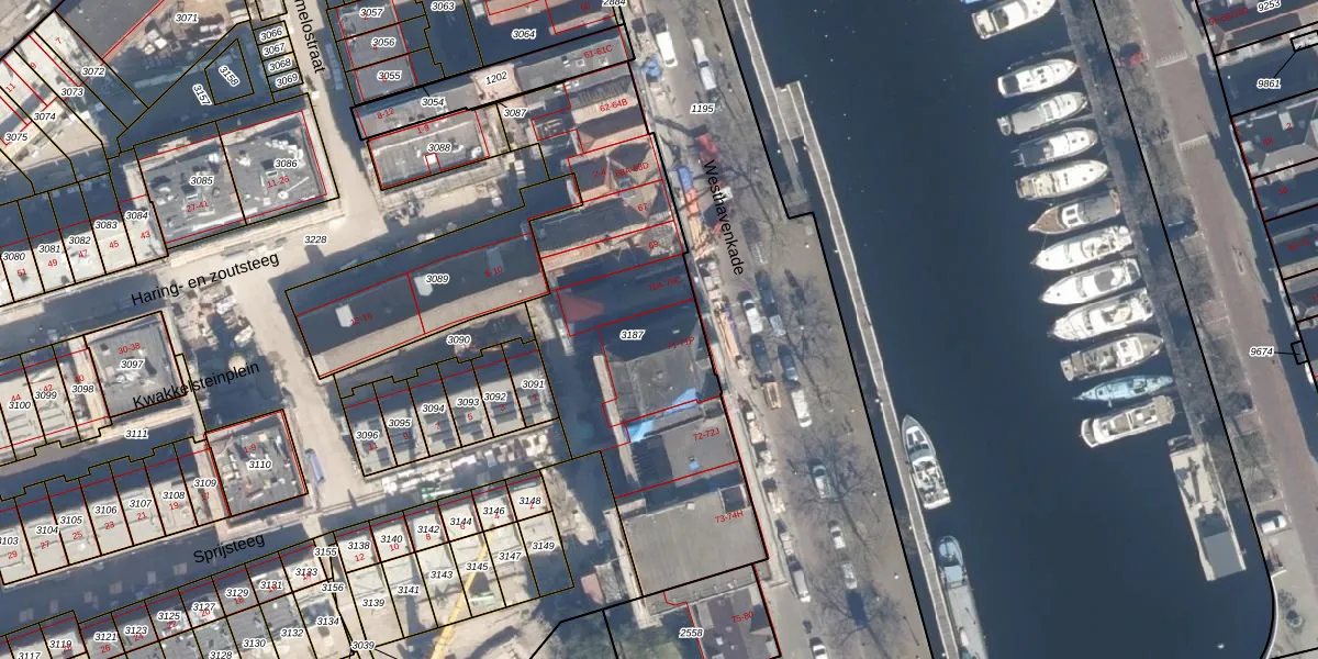 Het perceel waarop Westhavenkade 71-E staat heeft een oppervlakte van 1634 m². Dit is een zeer groot perceel. De perceeloppervlakte wordt geregistreerd door het Kadaster. Gedetailleerde informatie over de maten van dit perceel kunt u vinden in het rapport Kadastrale kaart met maatvoering van Westhavenkade 71-E.