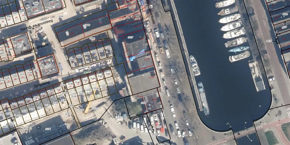 Het perceel waarop Westhavenkade 73-F staat heeft een oppervlakte van 1634 m². Dit is een zeer groot perceel. De perceeloppervlakte wordt geregistreerd door het Kadaster. Gedetailleerde informatie over de maten van dit perceel kunt u vinden in het rapport Kadastrale kaart met maatvoering van Westhavenkade 73-F.