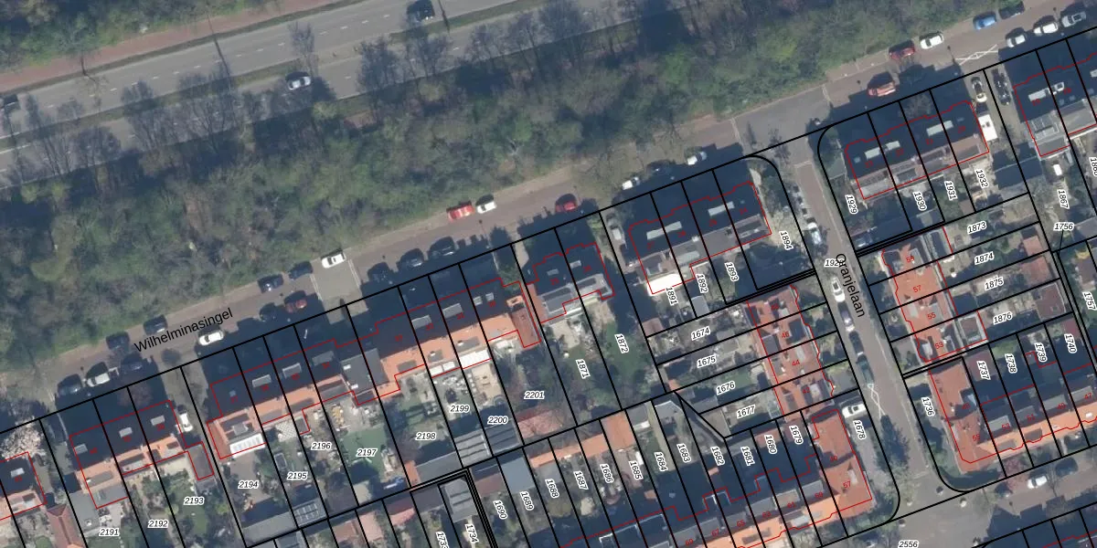 Gebruik de zoekbalk of klik op een perceel voor informatie over de adressen binnen dit perceel.