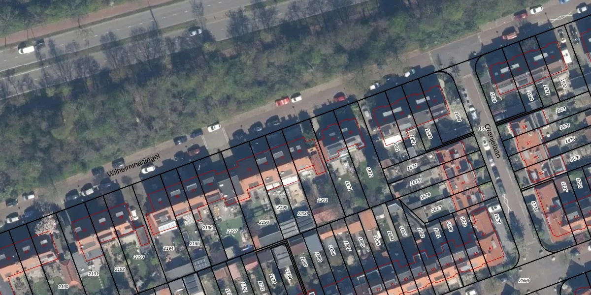 Gebruik de zoekbalk of klik op een perceel voor informatie over de adressen binnen dit perceel.