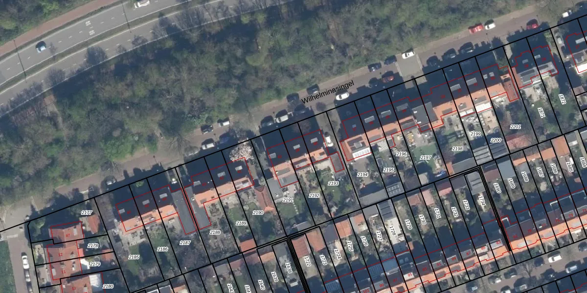 Het perceel waarop Wilhelminasingel 39 staat heeft een oppervlakte van 223 m². Dit is een middelgroot perceel. De perceeloppervlakte wordt geregistreerd door het Kadaster. Gedetailleerde informatie over de maten van dit perceel kunt u vinden in het rapport Kadastrale kaart met maatvoering van Wilhelminasingel 39.