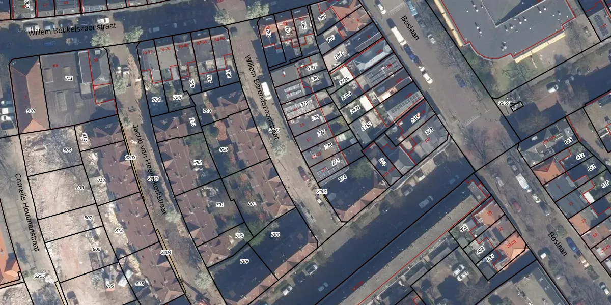 Het perceel waarop Willem Barendszoonstraat 21 staat heeft een oppervlakte van 96 m². Dit is een klein perceel. De perceeloppervlakte wordt geregistreerd door het Kadaster. Gedetailleerde informatie over de maten van dit perceel kunt u vinden in het rapport Kadastrale kaart met maatvoering van Willem Barendszoonstraat 21.