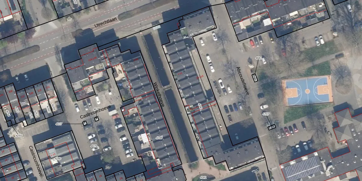Winkelhoeve 1 is gelegen op kadastraal perceel VDG00K4340. Deze kadastrale aanduiding is uniek en wordt gebruikt door het Kadaster om eigendomsrechten en andere zakelijke rechten vast te leggen. Het perceel maakt onderdeel uit van de kadastrale gemeente Vlaardingen.