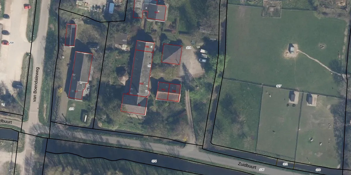 Het perceel waarop Zuidbuurt 89-E staat heeft een oppervlakte van 8150 m². Dit is een zeer groot perceel. De perceeloppervlakte wordt geregistreerd door het Kadaster. Gedetailleerde informatie over de maten van dit perceel kunt u vinden in het rapport Kadastrale kaart met maatvoering van Zuidbuurt 89-E.