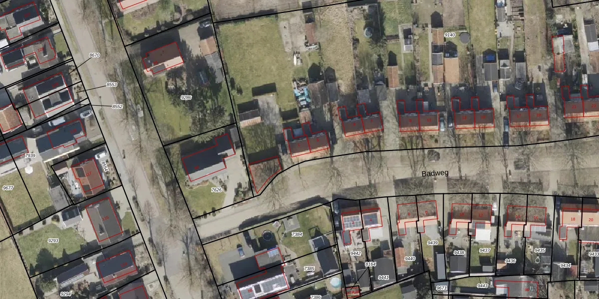 Badweg 1 is gelegen op kadastraal perceel VWD02B9140. Deze kadastrale aanduiding is uniek en wordt gebruikt door het Kadaster om eigendomsrechten en andere zakelijke rechten vast te leggen. Het perceel maakt onderdeel uit van de kadastrale gemeente Vlagtwedde.