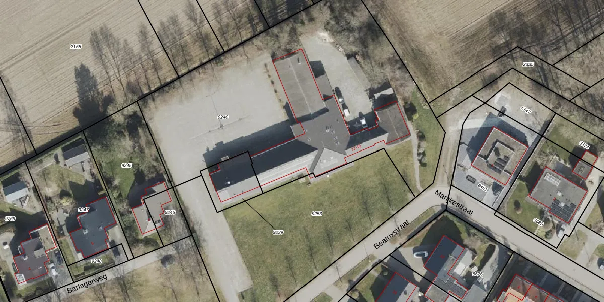 Het perceel waarop Beatrixstraat 15 staat heeft een oppervlakte van 4102 m². Dit is een zeer groot perceel. De perceeloppervlakte wordt geregistreerd door het Kadaster. Gedetailleerde informatie over de maten van dit perceel kunt u vinden in het rapport Kadastrale kaart met maatvoering van Beatrixstraat 15.
