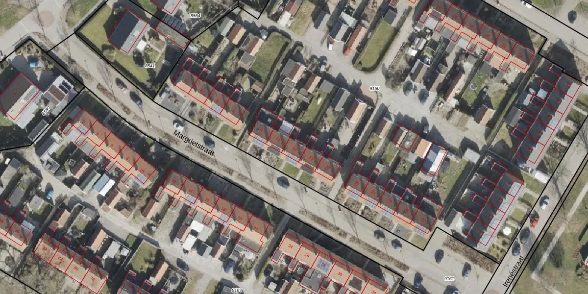 Het perceel waarop Margrietstraat 13 staat heeft een oppervlakte van 9677 m². Dit is een zeer groot perceel. De perceeloppervlakte wordt geregistreerd door het Kadaster. Gedetailleerde informatie over de maten van dit perceel kunt u vinden in het rapport Kadastrale kaart met maatvoering van Margrietstraat 13.