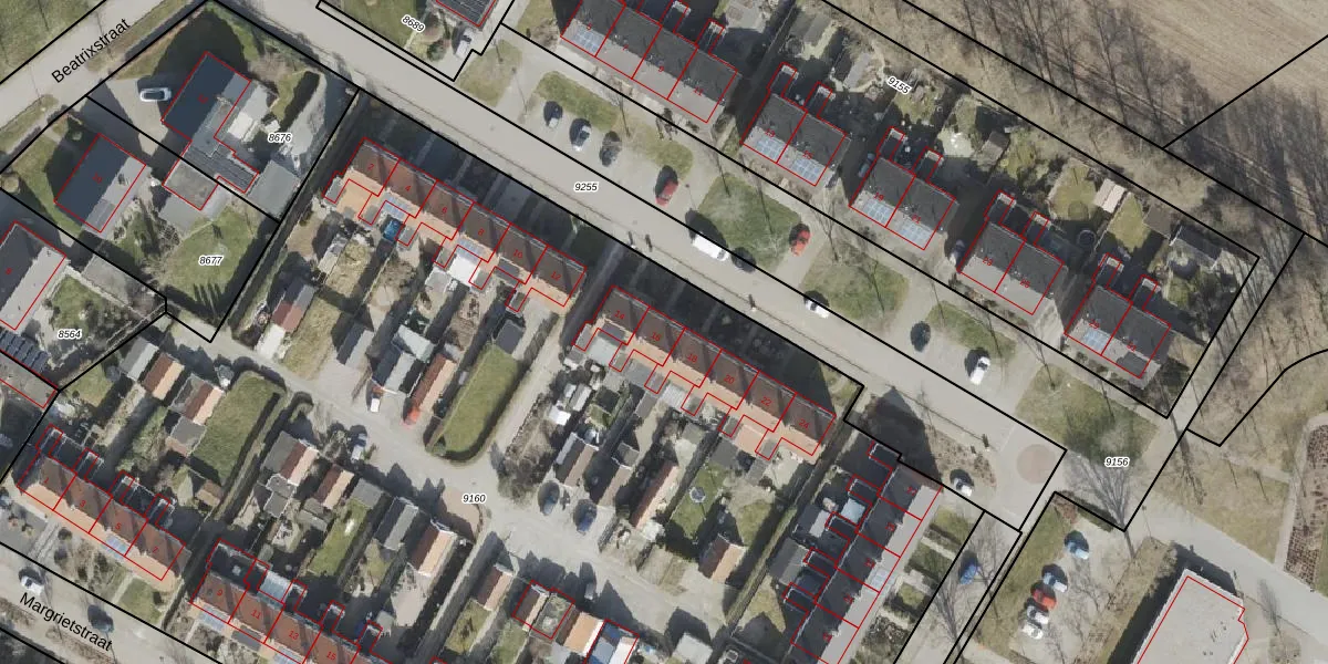 Het perceel waarop Marijkestraat 16 staat heeft een oppervlakte van 9677 m². Dit is een zeer groot perceel. De perceeloppervlakte wordt geregistreerd door het Kadaster. Gedetailleerde informatie over de maten van dit perceel kunt u vinden in het rapport Kadastrale kaart met maatvoering van Marijkestraat 16.