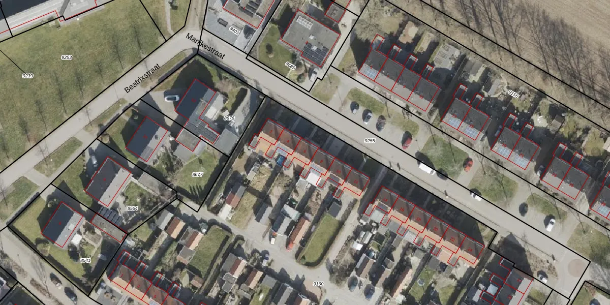 Het perceel waarop Marijkestraat 6 staat heeft een oppervlakte van 9677 m². Dit is een zeer groot perceel. De perceeloppervlakte wordt geregistreerd door het Kadaster. Gedetailleerde informatie over de maten van dit perceel kunt u vinden in het rapport Kadastrale kaart met maatvoering van Marijkestraat 6.