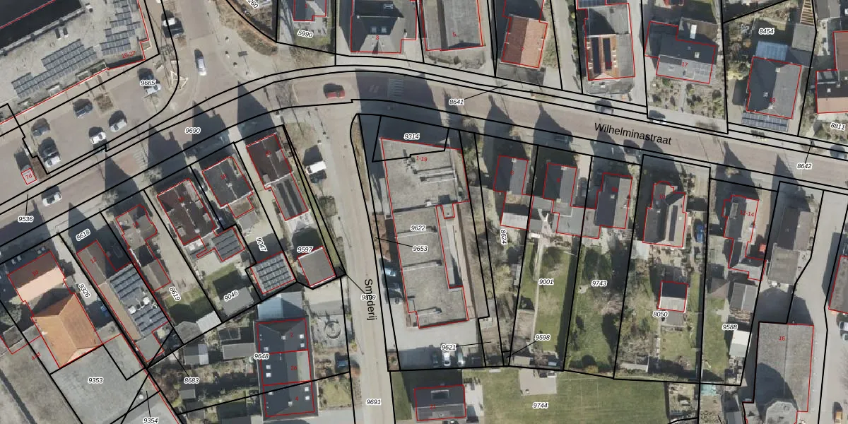 Het perceel waarop Smederij 13 staat heeft een oppervlakte van 1181 m². Dit is een zeer groot perceel. De perceeloppervlakte wordt geregistreerd door het Kadaster. Gedetailleerde informatie over de maten van dit perceel kunt u vinden in het rapport Kadastrale kaart met maatvoering van Smederij 13.