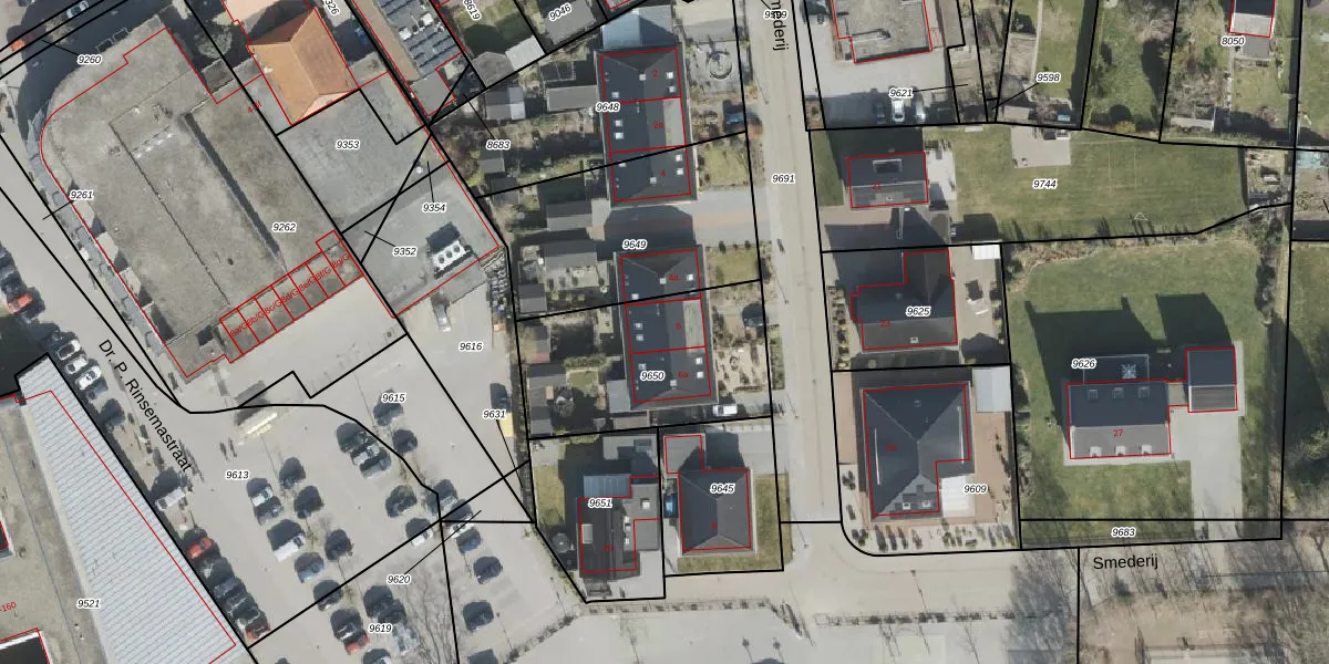 Het perceel waarop Smederij 6 staat heeft een oppervlakte van 718 m². Dit is een groot perceel. De perceeloppervlakte wordt geregistreerd door het Kadaster. Gedetailleerde informatie over de maten van dit perceel kunt u vinden in het rapport Kadastrale kaart met maatvoering van Smederij 6.