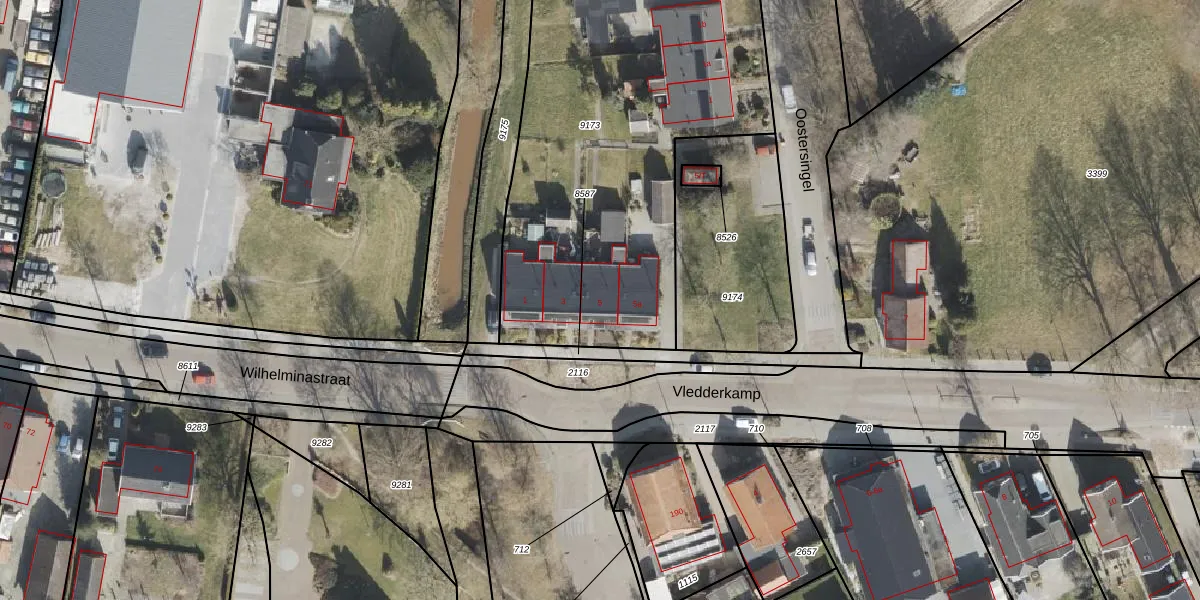 Het perceel waarop Vledderkamp 5 staat heeft een oppervlakte van 2785 m². Dit is een zeer groot perceel. De perceeloppervlakte wordt geregistreerd door het Kadaster. Gedetailleerde informatie over de maten van dit perceel kunt u vinden in het rapport Kadastrale kaart met maatvoering van Vledderkamp 5.