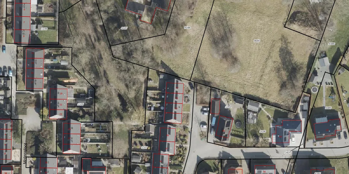 Het perceel waarop Wischmei 57 staat heeft een oppervlakte van 1823 m². Dit is een zeer groot perceel. De perceeloppervlakte wordt geregistreerd door het Kadaster. Gedetailleerde informatie over de maten van dit perceel kunt u vinden in het rapport Kadastrale kaart met maatvoering van Wischmei 57.